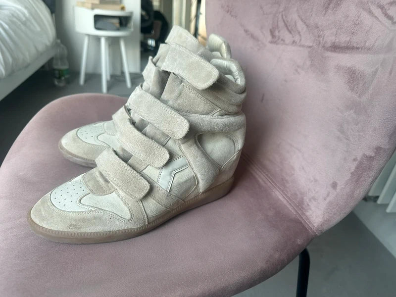 Elevate your street style with these authentic Isabel Marant Bekket wedge sneakers leather. A signature piece from the French designer, the Bekket features a hidden wedge heel, velcro straps, and a sleek high-top silhouette — blending comfort with effortless chic.